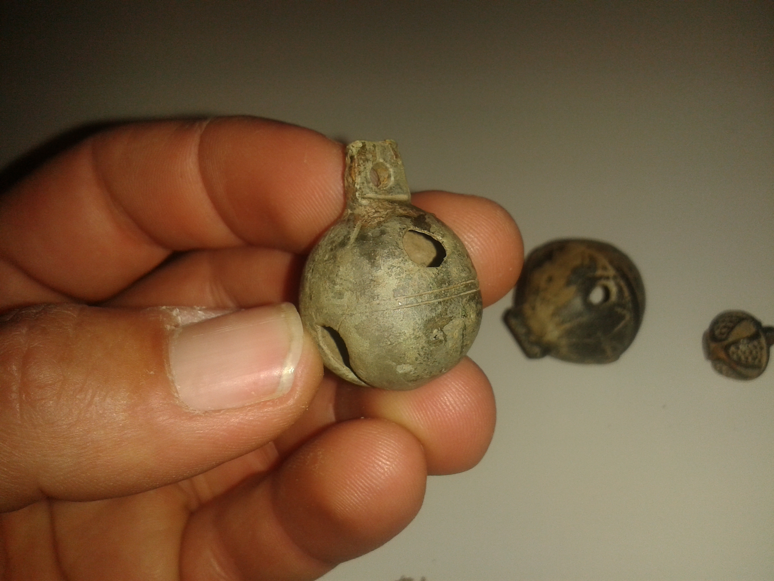 dann auch noch voll intakt mit Öse u wenn ichs richtig erkenn sieht die Kugel auch noch schön rund anstatt rostig deformiert aus ......ist bestimmt echt ziemlich authentisch der Originalklang vom Sommer 1678