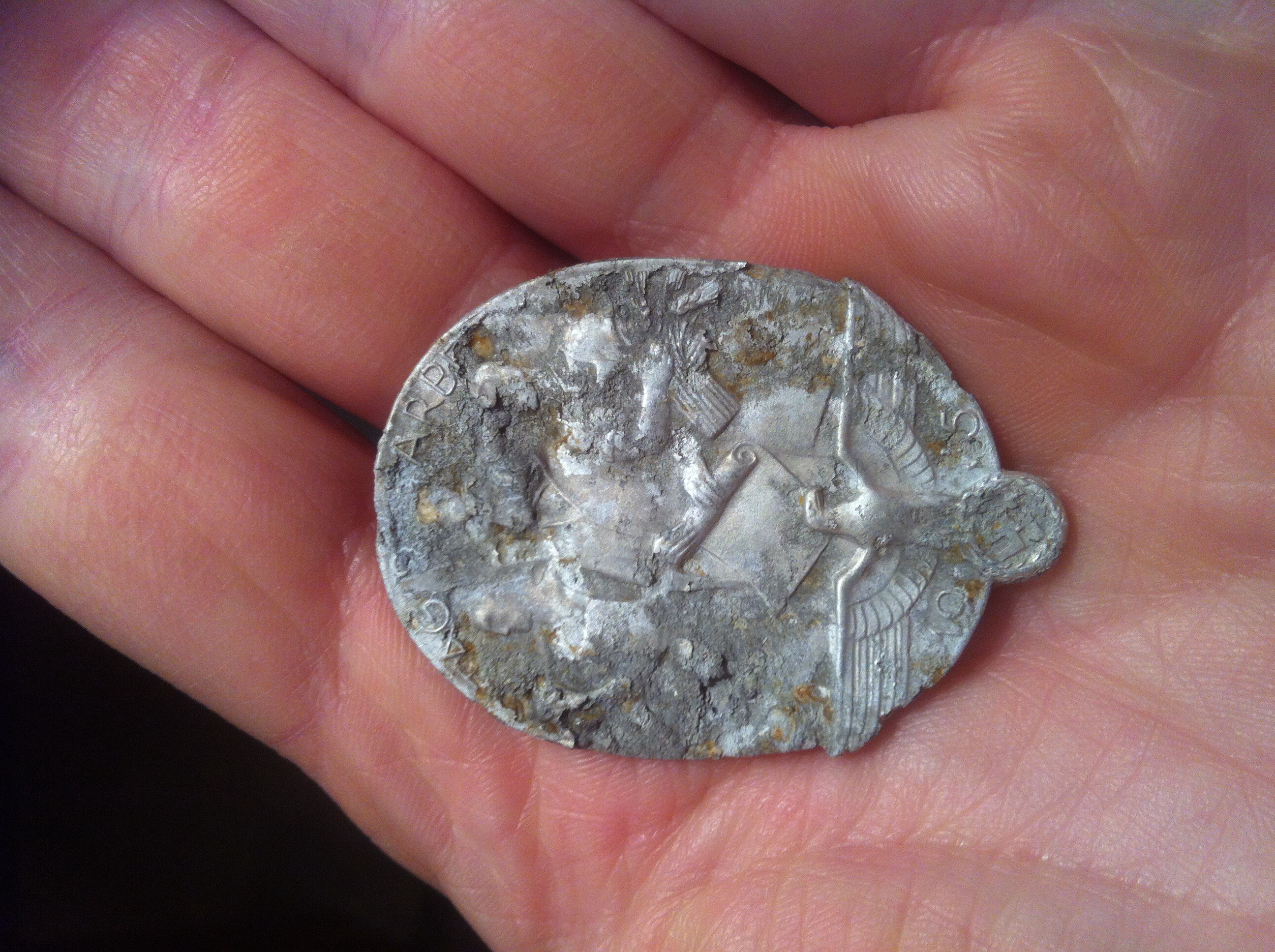 Das Abzeichen ist aus Aluminium, bei der Verkrustung musst du diese zuerst runter bekommen,
