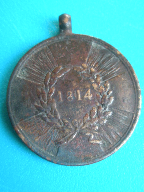 Hier mal eine Kriegsgedenkmünze aus den Napoleanischen Kriegen. Gefunden auf nem Acker der ansonsten garnix hergab. Besonders interessant ist die Aufschrift am Rand:" Aus Erobertem Geschütz " Soll heissen es wurden die französischen Kanonen eingeschmolzen und diese Münzen draus gegossen.