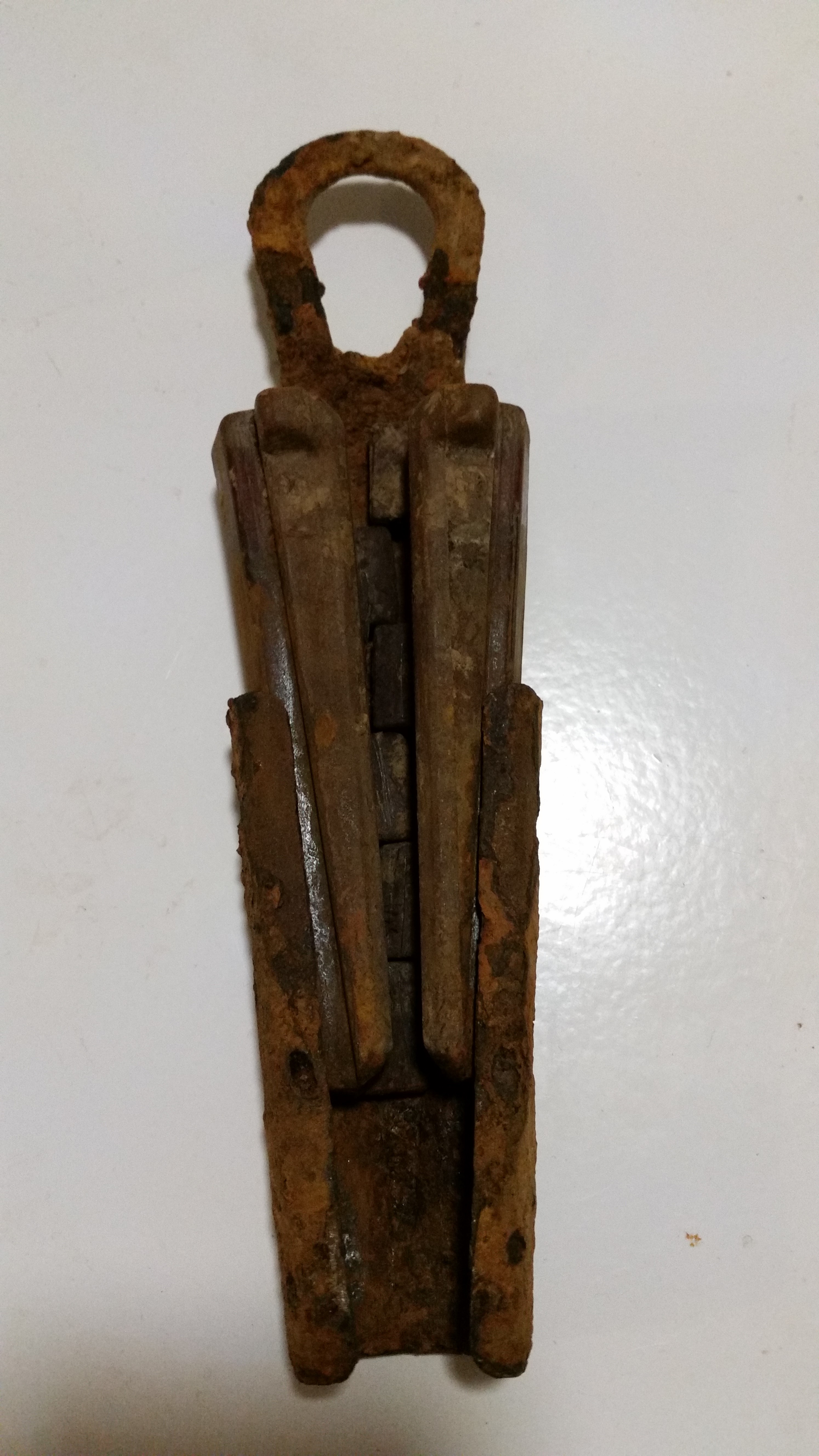 ich habe etwas gefunden, womit ich nix anfangen kann! Die beiden Elemente in der Mitte sind aus massiven Holz und außen aus Eisen. Die Holzelemente können nach oben und nach unten verschoben werden.