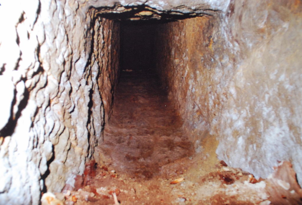 Minenstolleneingang, Neigungswinkel ca. 45 Grad vom eigentlichen Schützengraben