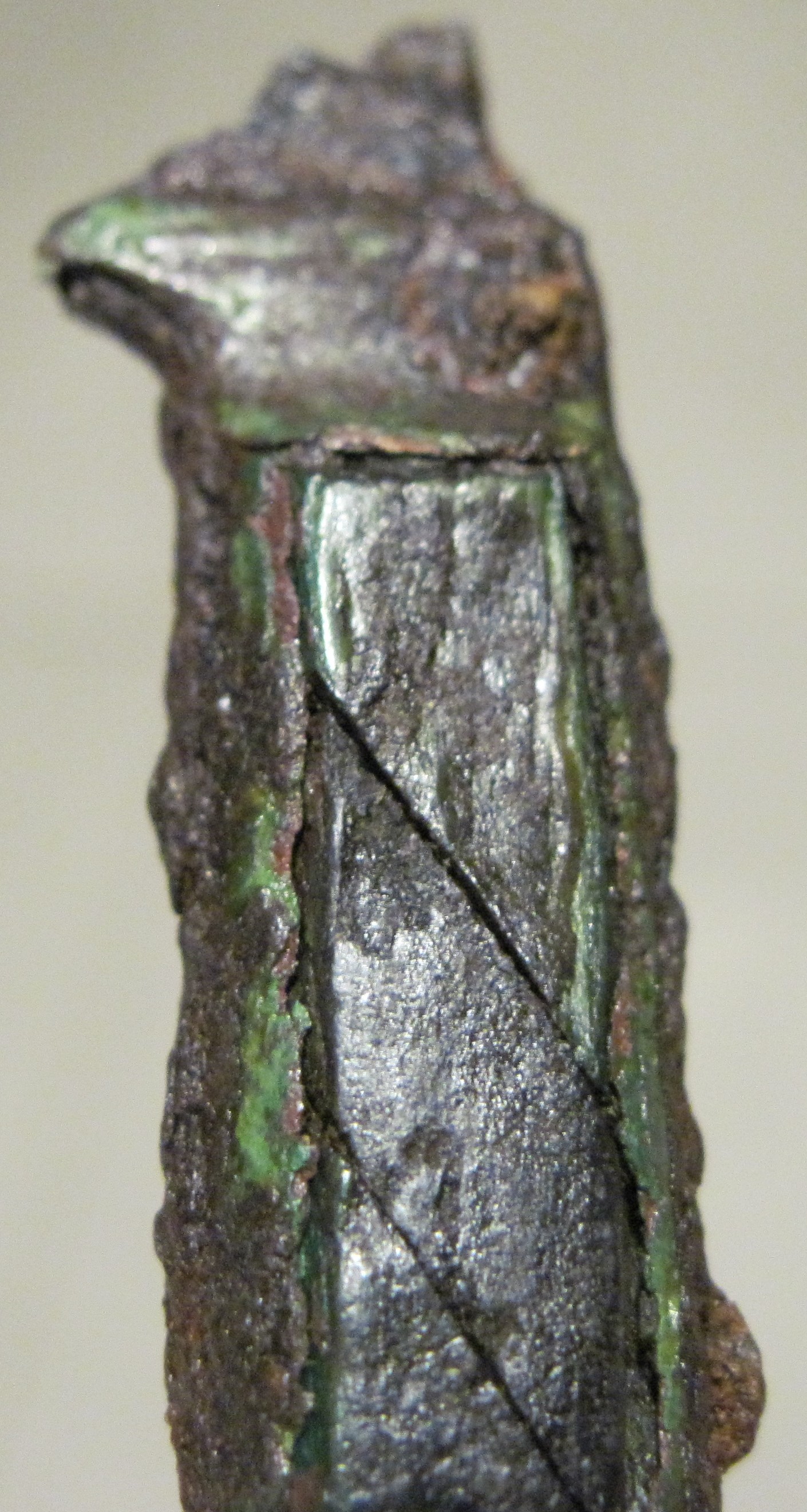 Hier ist ein Messergriff mit Holzeinlagen aus Kupfer/Messing!