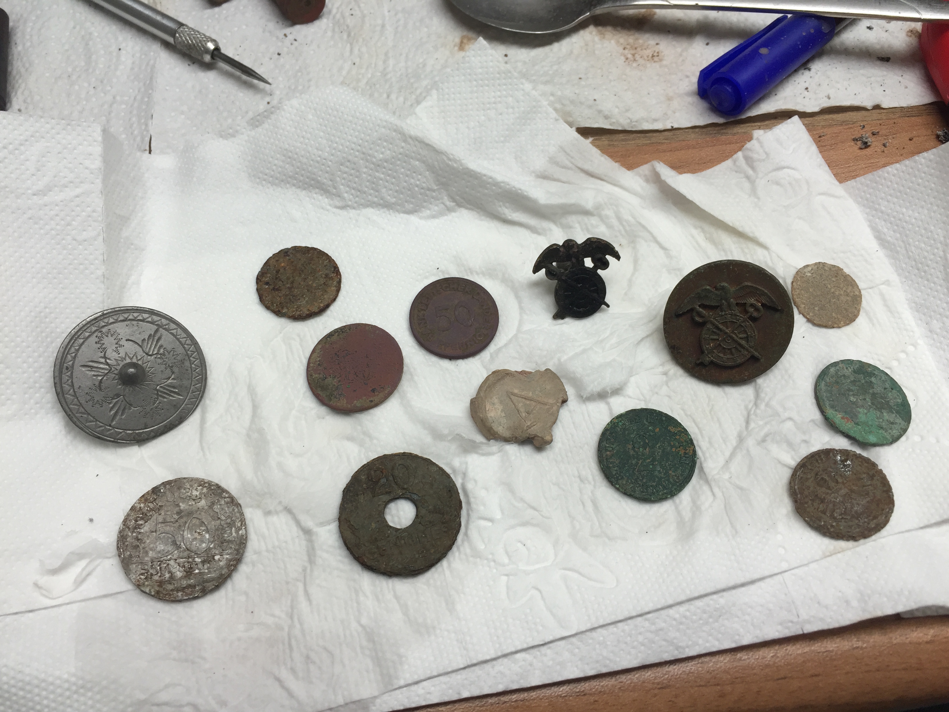 Dein Fund könnte auch ein Griff von einer Schublade sein der an einem Beschlag festgemacht war ? Solltest vlt nochmal ein extra Thema mit dem Foto einstellen, da es hier nimmer soviele sehen. Die Feuermarken sind warscheinlich Wertmarken, aber des weist du vlt schon besser.