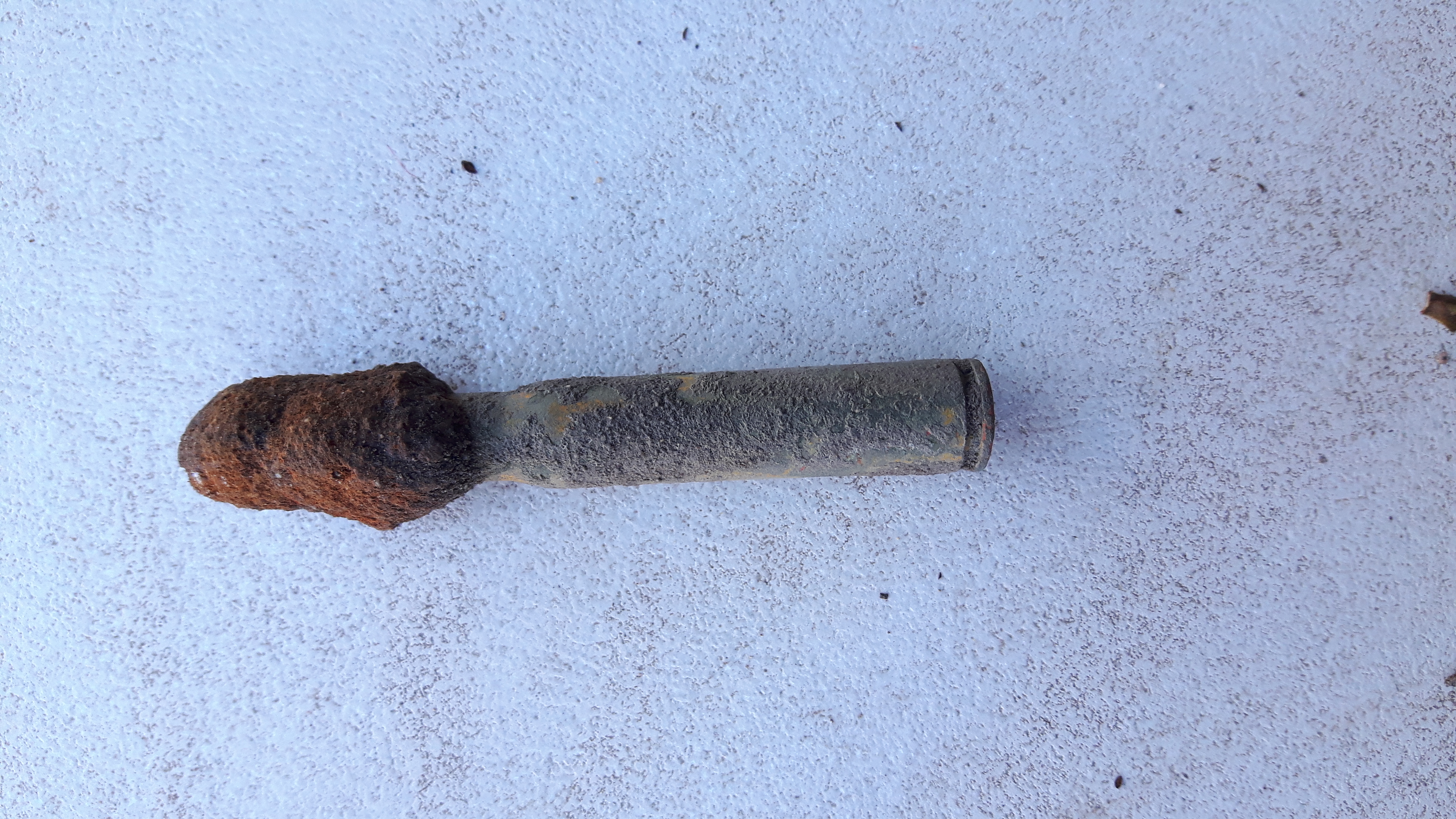 War heute am Feld und habe wieder eine komplette Patrone gefunden und das Zündhütchem ist nicht angeschlagen. Habe nicht viel Ahnung von Militariafunden also wende ich mich lieber an die Experten. Habe lange nachgedacht ob ich sie überhaupt mitnehmen soll obwohl das Projektil komplett eingerostet ist und hab sie nachher draußen in den Garten gelegt genauso wie die Patrone welche ich gestern gefunden habe nur mit dem Unterschied, dass diese komplett unversehrt war bis auf eine kleine Delle auf der Hülse