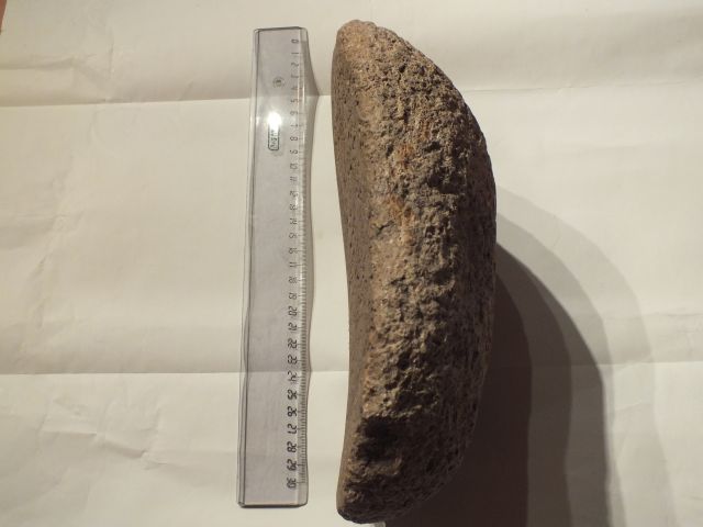Es war an einem schönen Sonnigen Sonntagnachmittag in1998 ich war mal wieder Scherbenlesen auf einer Jungsteinzeitlichen Siedlungsstelle der Michelsberger Kultur,und da fand ich diesen noch kaum beschädigten Reibestein zur herstellung eines groben Getreidemahlguts.Ich freute mich wie ein Kleiner Junge über meinen Tollen Fund es war auch schnell Abend ich genehmigte mir ein schönes Weizen und ging auch bald ins Bett.In der Nacht wachte ich auf ich hörte ein schaben,ein knarren,ein lautes reiben vor mir im Warmen Sand kniete eine Wunderschöne Frau mit Braunen Langen Haaren,der duft von frisch gebackenem Brot lag mir in der Nase,vor mir auf dem endlos scheineden Feldes sah ich ein Riesengrosses Langhaus der Michelsberger Kultur im Jahre 4000 v.Chr.Es kligelte Laut ich erschrak das war mein Wecker,schade alles nur Geträumt ich kahm in unsere Küche und es gab Frisch aufgebackene Brötchen.......................Eine Geschichte eines kleinen Jungen an einem wunderbaren Tag..... gruss Dr.Feuerstein