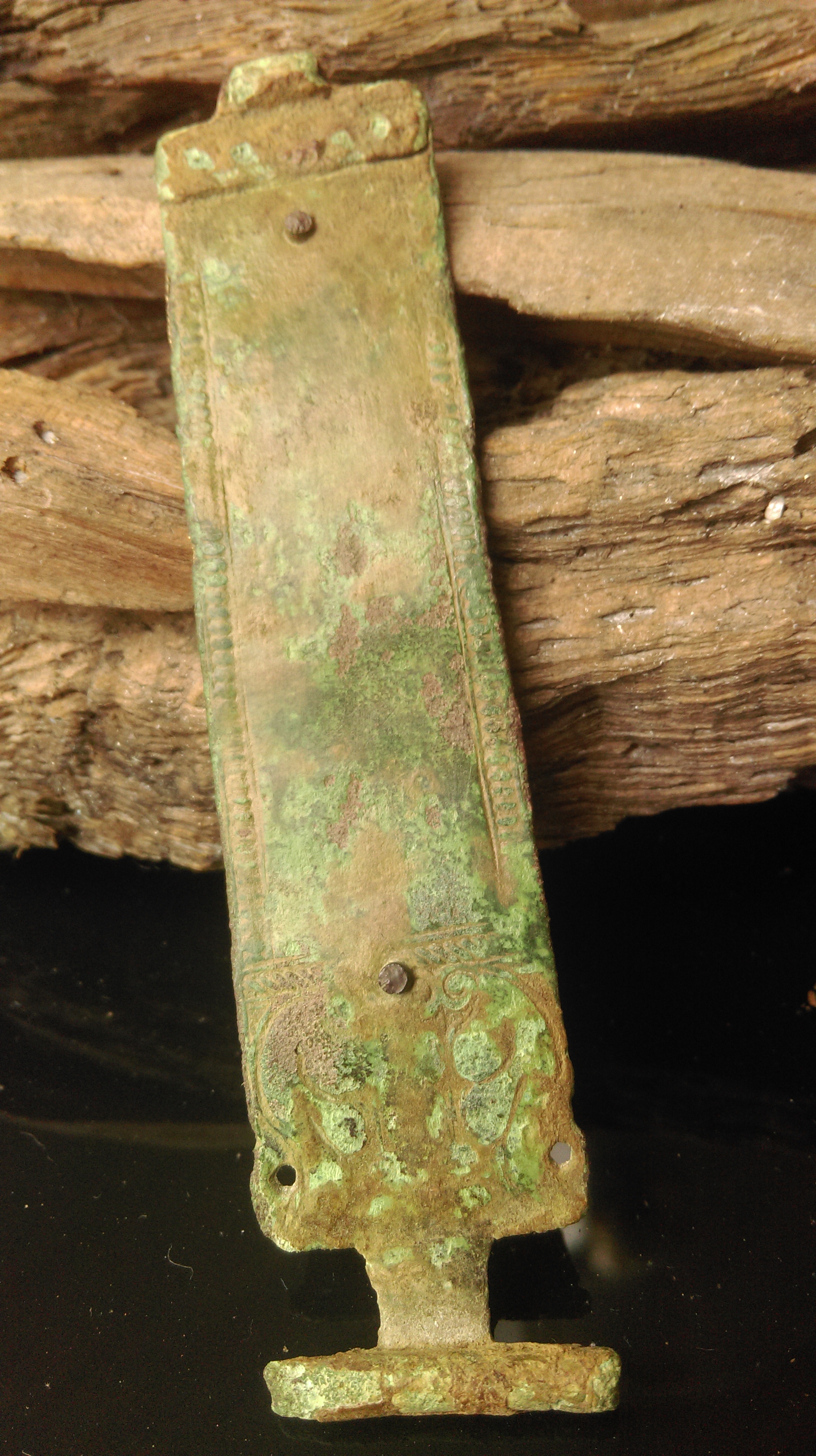 Keine Ahnung was das sein kann. Fakt ist es besteht aus Kupfer und ist verziert Länge 10,5 cm und Breite 2,4 cm.