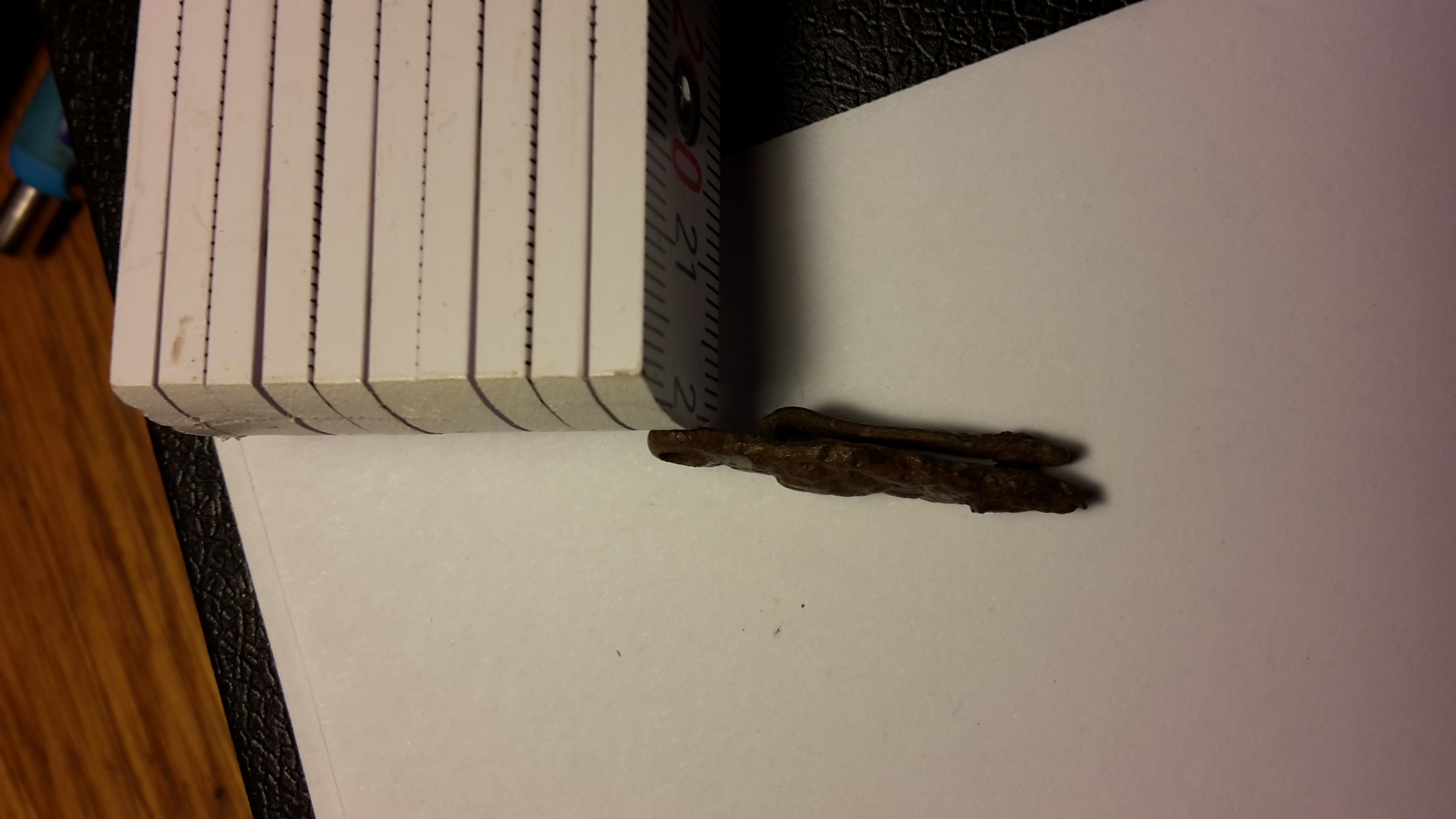 Er ist ca. 30mm lang und 10mm an der breitesten Stelle.