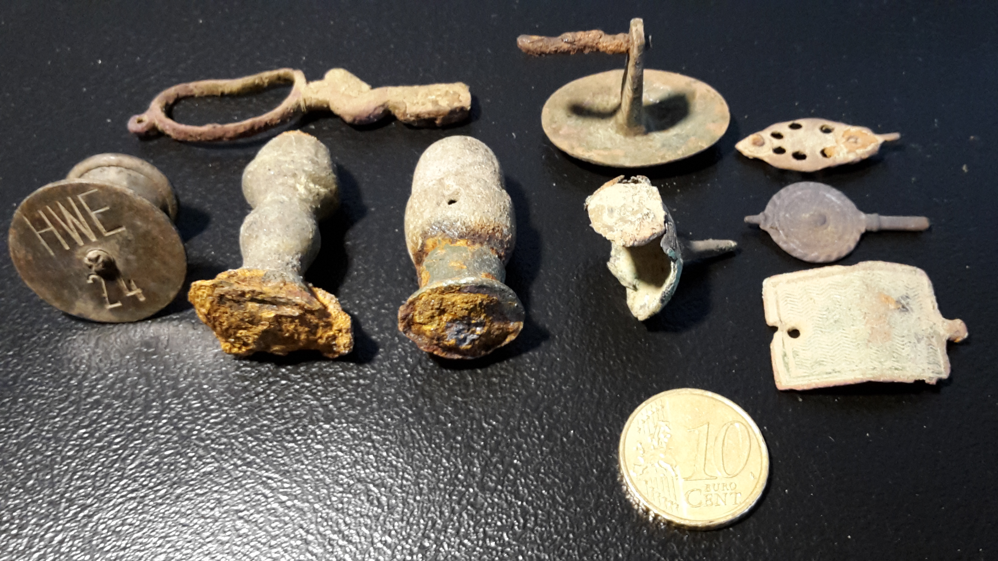Links ober die beiden Teile sind Uhrenschlüssel.
